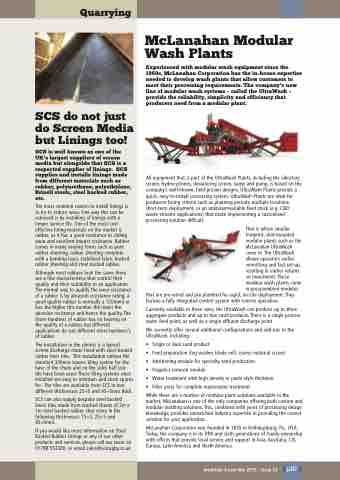 Experienced with modular wash equipment since the 1960s, McLanahan Corporation has the in-house expertise needed to develop wash plants that allow customers to meet their processing requirements. The company’s new line of modular wash systems – called the UltraWash – provide the reliability, simplicity and efficiency that producers need from a modular plant.