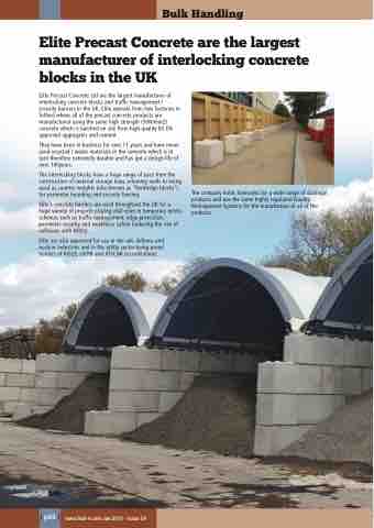 Elite Precast Concrete Ltd are the largest manufacturer of interlocking concrete blocks and traffic management / security barriers in the UK. Elite operate from two factories in Telford where all of the precast concrete products are manufactured using the same high strength (50N/mm2) concrete which is batched on site from high quality BS EN approved aggregates and cement.