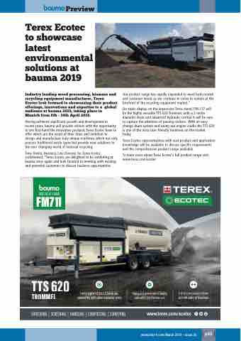 Tony Devlin, Business Line Director for Terex Ecotec commented, “Terex Ecotec are delighted to be exhibiting at bauma once again and look forward to meeting with existing and potential customers to discuss business opportunities.