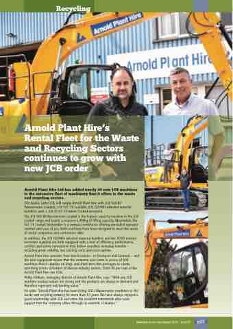 Arnold Plant Hire Ltd has added nearly 40 new JCB machines to the extensive fleet of machinery that it offers to the waste and recycling sectors.