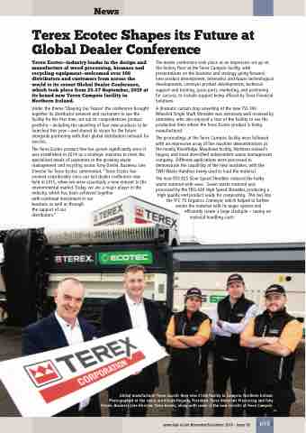 Terex Ecotec—industry leader in the design and manufacture of wood processing, biomass and recycling equipment—welcomed over 100 distributors and customers from across the world to its recent Global Dealer Conference, which took place from 25-27 September, 2019 at its brand new Terex Campsie facility in Northern Ireland.