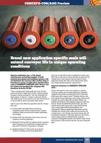 Superior Industries, Inc., a U.S. based manufacturer and global supplier of bulk material processing and handling systems, will revolutionize the conveyor idler market when it introduces a group of application-specific idlers seals at CONEXPO-CON/AGG 2020. They’re one of a dozen new products the company will introduce in booth C31389.