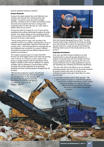 “The big selling points for Edge is the versatility of the machines we have in our portfolio, and being able to focus on a diverse range of applications, especially in the waste and recycling sector – from small operations to multi-nationals, we have equipment that can perform in a variety of different environments and tasks and meet different regional levels of legislation and standards.”
