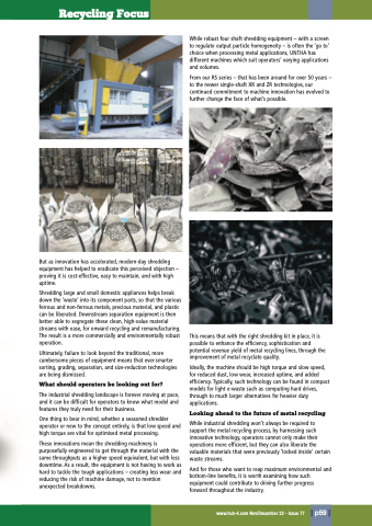 While industrial shredding won’t always be required to support the metal recycling process, by harnessing such innovative technology, operators cannot only make their operations more efficient, but they can also liberate the valuable materials that were previously ‘locked inside’ certain waste streams.