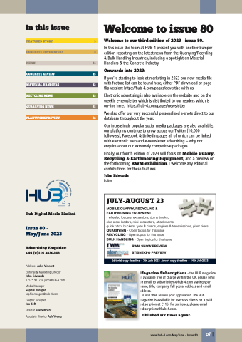 In this issue the team at HUB-4 present you with another bumper edition reporting on the latest news from the Quarrying/Recycling & Bulk Handling Industries, including a spotlight on Material Handlers & the Concrete Industry.