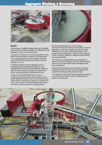 “Our goals as a business are to be more sustainable in every facet of how we operate as a business,” Mr. Penny shared. “It’s an ongoing process, and we’re looking to reduce our carbon footprint. With the McLanahan plant on site, that’s allowing us to do so.”