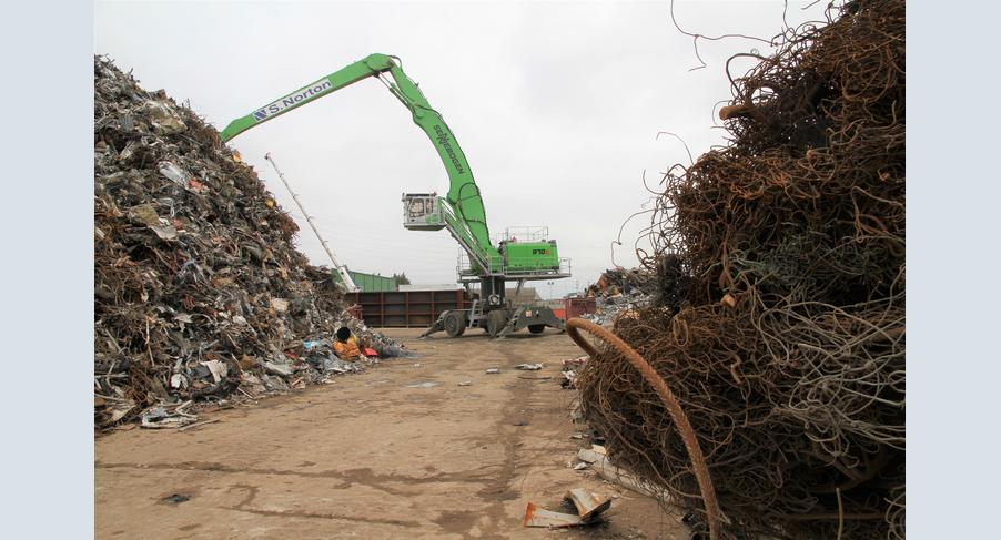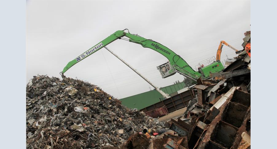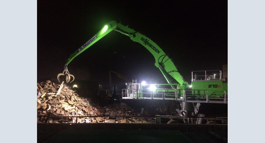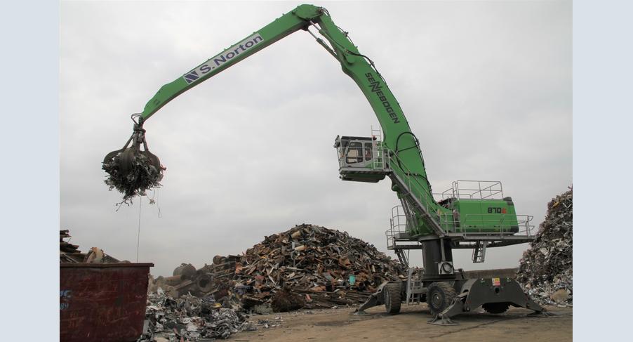 HUB visit to S Norton's metals recycling site to view a Sennebogen 870E Hybrid Material Handler