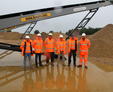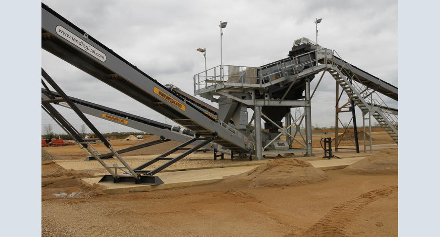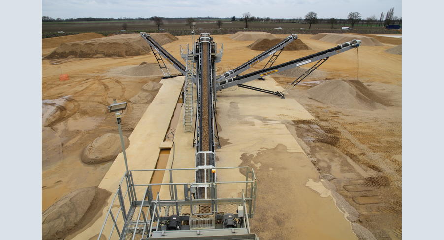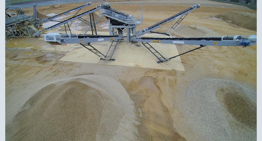 Acting as a protection deck the top deck removes any rejects (+40mm), with the bottom deck providing the feed to the Fines Master 120C to produce the two required sands which are stockpiled by radial conveyors.