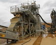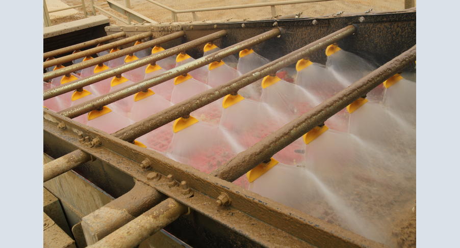 A 4.3m x 1.8m high frequency dewatering screen fitted with polyurethane screen modules reduces residual water content in the final products to 10–15%.