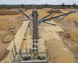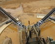 A specially designed rubber-lined underflow box allows blending to take place so that an acceptable coarse and fine sand ratio can be achieved. These sands are then delivered to separate radial conveyors and stockpiled.
