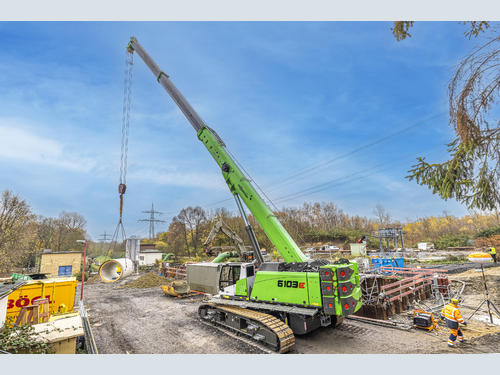 The new SENNEBOGEN 6103 E is a telescopic crane with a load capacity of 100 t and a maximum boom length of up to 62 m, specially designed for demanding Pick and Carry applications. The new addition to the product line is equipped with a 186 kW diesel engine of emissions stage V, which also hydraulically drives the powerful crawler drive of the 100 t machine as well as main and auxiliary winches with 100 kN tractive force each and allows cable speeds of 125 m/min. Thanks to a wide range of equipment solutions, the machine can also be configured to meet a wide range of customer-specific requirements in special civil engineering or hydraulic engineering, for example with working area limitation, safety and low-temperature package or for operation with organic oils.