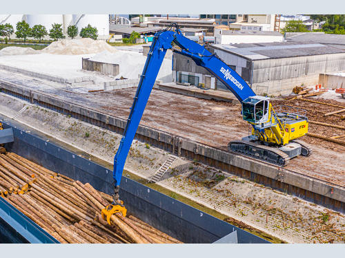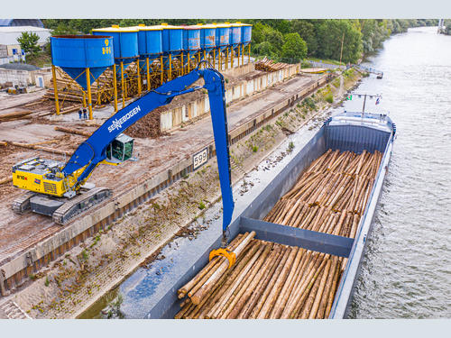 Bulk goods, general cargo, timber - everything is possible at BUS Bendorf. This is why stevedoring companies such as the Rhineland-Palatinate-based company are increasingly relying on material handlers to replace cranes on the quay, some of which are getting on in years. There are many reasons for this: the volume of cargo handled in inland ports has risen steadily in recent years, and more goods are being transported by water. It also becomes more difficult to purchase spare parts the older the existing crane models are. On top of that, depending on the material, a material handler completes two work cycles in the same time that a crane only manages one cycle.