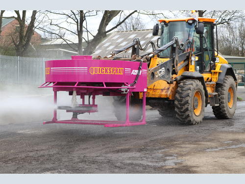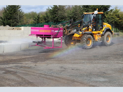 Milton Keynes based Ace Plant provided a Quickspray Dust Suppression Unit as a demonstrator for this Council to test. Using the built-in fork sleeves of the Quickspray, this Council’s own JCB417 loader could be utilised. Powered by third service hydraulics, the Quickspray is fitted with a hydraulically driven carbon fibre spinning disc which atomises water into a fine mist – trapping airborne and surface dust.