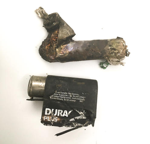 Just like any other energy storage cell, lithium-ion batteries (LIBs) consist of an anode and a cathode, separated by a Li-ion permeable membrane and a non-conductive electrolyte. Energy is released when the ions flow between the two electrodes or is stored in the anode when over-voltage is applied. Compared to other technologies, lithium-ion batteries have one of the highest energy densities thanks to the very high working voltage that can be generated between the anode and cathode. Ultimately, this is the problem when the battery is mechanically damaged and short circuits. If mechanical processing bends or severs the cell this could destroy the separator, producing a short circuit. This causes the voltage between the poles to drop to zero, releasing the stored energy as heat at different points. Even with apparently run-down, used batteries, the remaining energy is so high that temperatures of over 600 C may occur.