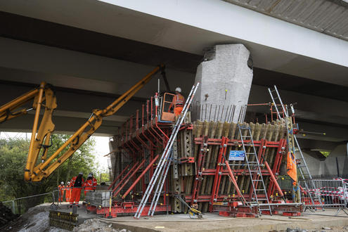Constructed over the River Nene in the 1970s, Nene Bridge is an award-winning structure, iconic for its ‘v’ shaped pier. As a major traffic route, it provides access to vehicles travelling from the A1 to A47, as well as pedestrians and cyclists going between the north and south of the city. The bridge is currently undergoing extensive refurbishment, including reinforcing the bridge piers and replacing bearings, as part of a repair programme being carried out by Skanska.