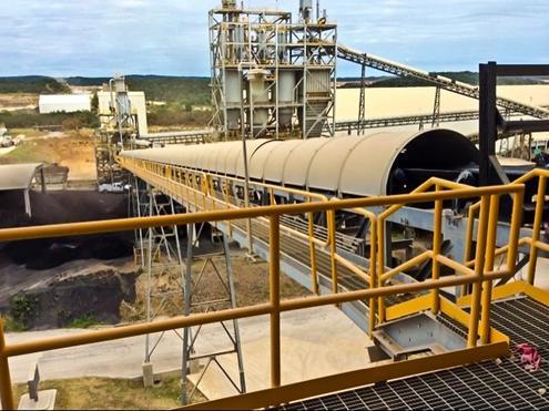 Limestone extracted from the Hunter quarry is crushed to a size of 6-inch minus (150mm) and mixed with clay, then conveyed to a processing tower. Separate conveyors deliver iron ore and sand to the same tower and the two chutes offload 350 to 400 tons (317.5 to 362.8 metric tons) per hour onto the D-07 conveyor, mixing them together on the 42 in. (1068 mm) single belt running at 350 FPM (1.8 MPS).