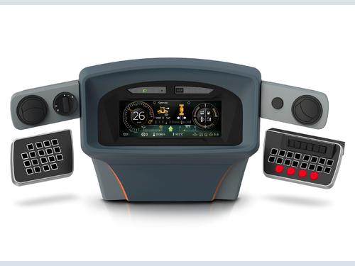 In addition to these compact and cost-effective solutions, Continental also offers premium versions, like the freely programmable MultiViu Professional12 instrument cluster, which boasts a high-resolution, optically bonded 12.3-inch color TFT display, a real-time 2D graphic display and a video display. The MultiViu Professional12 eases the driver’s workload by clearly presenting all the relevant information about his machine as animated text, scales, bar graphs or symbols. This ensures the highest possible levels of efficiency and precision – and this can also be seen in the modular driver’s workplace (mDWP) in which Continental uses the MultiViu Professional12.