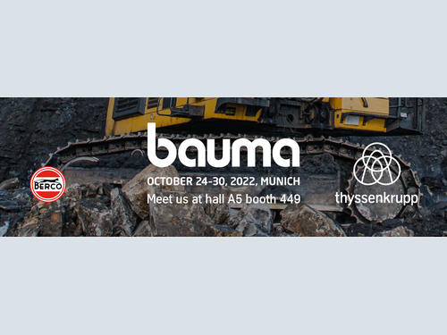 Berco’s novelty solutions will be presented and on display at bauma, at the thyssenkrupp Group booth A5.449.