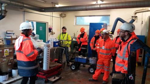 The one day Bitumen module of the NVQ allowed the nine technicians to learn about bitumen production methods, bitumen behavior and modification, health and safety aspects of bitumen and Emulsion production, modification and its applications. A key part of the visit was a tour of Total Bitumen’s Preston Technical Centre to see the various test resources available used in bitumen R&D such as the Texas Overlay Machine (TOT), BBR, DSR and industrial bitumen production.