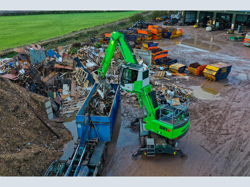 Molson Green Sales Manager, Brian Albiston said, “Kenny and the team were very clear on what they wanted from this machine. With how busy the site is, along with the wider variety of material they sort and process here, it was clear to me from the start that versatility and reliability is the key. In the Sennebogen 821 E they have both of these attributes in abundance. The ULM boom configuration, with the selector grab attachment means that the operator can pick with precision when sorting, but still reduce loading cycle times when loading bins and waggons”.