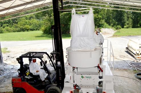 Blastcrete Equipment Company introduces a dust suppression system that limits silica dust exposure in industrial, construction and mining applications. The patent-pending DustAway system consists of an innovative bulk bag design that attaches to a mixer to contain dust as the mixer fills. The bag’s dust ruffle encapsulates airborne particles, helping to control respirable dust. DustAway helps businesses meet new OSHA regulations for crystalline silica dust by controlling dust to within OSHA-permissible exposure limits, or PELs.