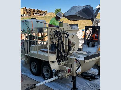 In addition to the 2L8 rotor-stator, the RS180 features a 12-cubic-foot hydraulic spiral mixer, driven with a planetary gearbox, offering variable speed from 0-60 RPM for application- and site-specific adjustments. Mixing a full load in less than two minutes, the robust mixer minimizes downtime and ensures a continuous flow of material. A 15-cubic-foot receiving hopper, easily charged with 1,000-pound bulk bags or 11.6-cubic-foot skid steer bucket, further increases jobsite efficiency.