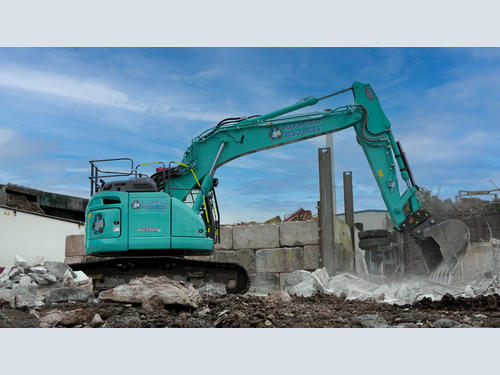 Undertaking the yard redevelopment works, Bloomfield has added a new Kobelco SK270SRLC compact tail swing excavator. With an operating weight just under 28 tonnes, the first few weeks of operation for the Kobelco was spent on ripping up the existing, poor quality concrete around the yard.