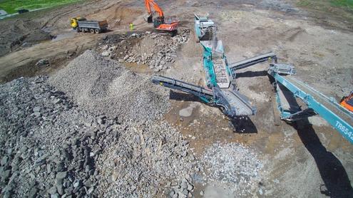 The crusher and screen are working together processing the material that was both reused within the A556 project and hence saving costs, as well as being taken to a variety of other projects throughout the North West. Product created from the crushing and screening include a MOT Type 1, 6F2 and drainage stone. It is estimated that the new bypass stretches four miles and will carry more than 51,000 vehicles every day.