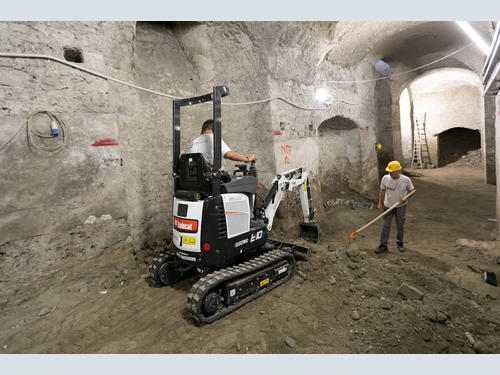 Salvatore Lucci, owner of Lucci Salvatore Srl, says: "The intervention at the Girolamini Monumental Complex and its subsoil conveys to us as much pride as it does fascination. The results achieved are possible thanks to the careful and constant work of the Bobcat E10e electric excavator without which this important intervention could not have been carried out as it is too deep to be performed manually or with less effective tools. Lucci has always relied on Bobcat, with full satisfaction and awareness of being able to count on innovative, reliable and technologically advanced means, allowing us to operate in the very delicate contexts of our core business."