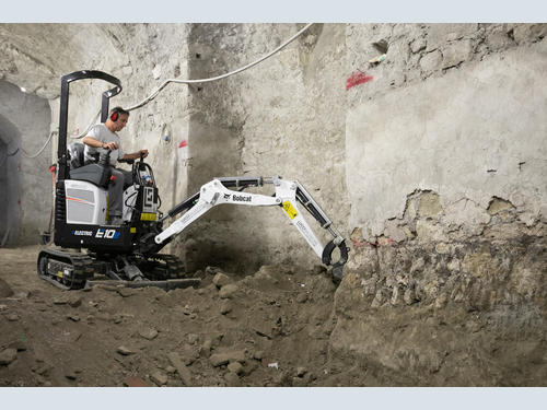 Bobcat's E10e is the world's first 1-tonne battery-powered mini-excavator, combining zero emissions, low noise and a width of just 71 cm; this allows it to easily pass through narrow spaces making it ideal not only for indoor excavations, but also in many other sites where this type of machine is needed, such as inner-city operations, night work and construction sites in low-noise areas such as hospitals, cemeteries, schools, etc.