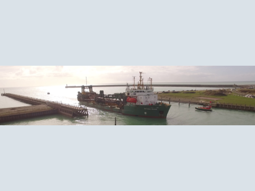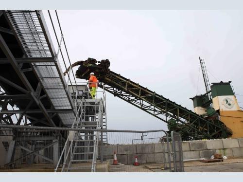 The site is located on the South Coast of the UK, close to the marine licences in the English Channel and the Isle of Wight and is capable of receiving 10,000t cargo dredgers. The site is now receiving material from a range of vessels such as Brett vessel the mv Britannia Beaver and the Charlemagne, Melina and Victor Horta from our dredging partner, Deme Building Materials Ltd.