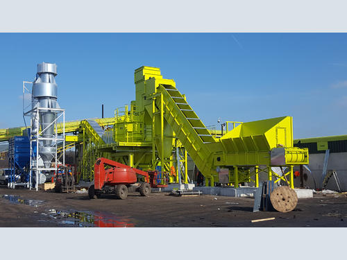 Accordingly, the experts from BHS designed the plant based on the test data. The feed material is supplied to the Rotorshredder of type RS 3218 via a feeder. The tools of the Rotorshredder exert a very intense stress on the feed material through impact, shock and shearing forces. The result is selective size shredding: Particle sizes are selectively reduced and composite materials are separated. All fine fractions of particle sizes smaller than 25 mm are processed on other existing plants. The fraction >25 mm is conveyed to a zigzag sifter, which frees the feed material from light material (fluff, films, fibers, dust, etc.).