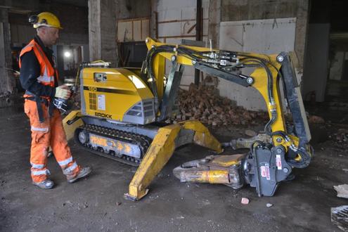 Bradley Demolition Managing Director Paul Johnson explained “Utilising the Brokk machines in small confined spaces within large buildings has many advantages, now having the OilQuick system installed to our Brokk160 as well gives us an additional edge, saving us loads more time and money” adding “The demolition industry in large have recognised the benefits of the OilQuick system in recent years for changing attachment on operator driven excavators, we spoke to Warrington based attachment specialists ECY Haulmark and they were able to offer us a unique engineering solution to adapt their OilQuick system to suit our Brokk160”.