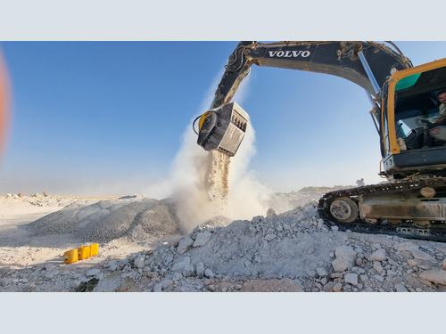 Water means life. And to achieve a project of this scale the largest water treatment plant in the world was built, with a capacity of 7.5 million m3/day of water. However one of the only requirements of this job is: keeping to the schedule. So Al-Fanart Contracting company employed an MB Crusher jaw crusher bucket BF135.8 for their Doosan excavator to process the white limestone. The fixed crusher they were using simply could not match the production rate that they needed while the BF135.8 with its load capacity of 1.6 m3is the right tool for the job because it boosts productivity.
