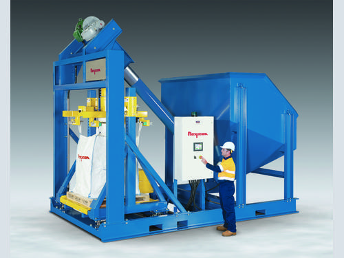 It is equipped as standard with forklift fill head height adjustment to accommodate all popular bag sizes, and a feed chute outlet port for dust-free air displacement during filling. Automated functions include an inflatable collar to seal the bag inlet spout, an inflator to remove creases from the bag prior to filling, an automated vibratory densification/deaeration system to stabilise the bag, and pneumatically-retractable bag hooks that disconnect the bag from the filler, ready for removal by forklift.