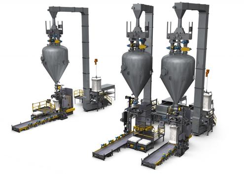 Bulk material packaging operation uses three, high-capacity storage vessels to ensure 50,000 pound/hour process rate