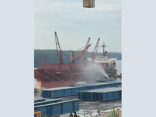 Operators report that air quality at the port has significantly improved during the unloading of clinker and other dusty materials, and that fugitive dust emissions have not been seen leaving the site since adding the units to the facility’s dust management plan. The cannons are easily positioned on the dock, taking up little room and covering a large area, allowing crane operators to transfer material from hold to hopper more efficiently. The industrial park has experienced a noticeable improvement in air quality, especially when a DB-60 is in operation during dry and windy periods.