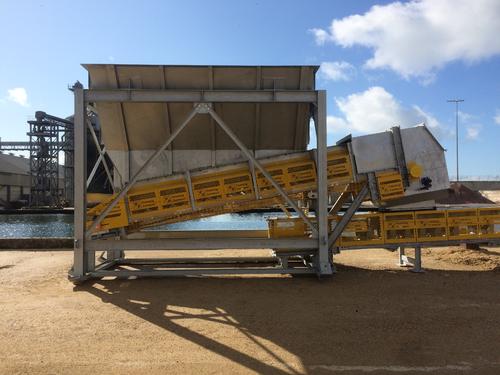 To achieve and facilitate these requirements Canning Conveyor designed, manufactured & installed a 10m³ hopper feeder together with three conveyors which ran parallel with the sea wharf, using a modular conveyor system that offered true flexibility throughout; designed for ease of transport and assembly at site.