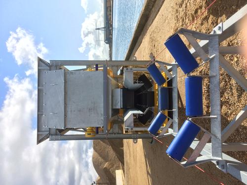 The Hopper Feeder feeds sand & gravel directly in-line onto a 600mm wide x 32m long modular stringer type troughed belt conveyor, which feeds onto a 600mm wide x 7m long conveyor and then onto the third conveyor, 600mm wide x 80m long, all running parallel to the sea wharf.