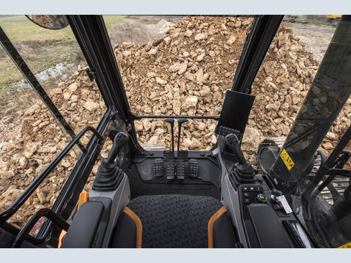 All E-Series models retain the top tier comfort and safety features of the previous generation crawler excavators: spacious and roomy, fully adjustable ergonomic seats, optimised armrest position and joystick control. The right-hand side visibility was good before, and now it is excellent. Operator protection is still a priority, with standard safety features, such as the falling object protective structure (FOPS) level 2, retained.