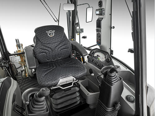 The totally redesigned and restyled interior and exterior cab is wider, providing greater clearance for the operator’s legs when rotating the seat between forward facing and rear facing configuration, and superior accessibility to the cab. The left-hand cab console redesign also places the wiper tank beneath one of the new open tray storage units, enabling convenient refills via the left-hand door.