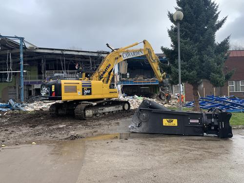 Samuel Crooks, Demolition Manager at Cawarden commented “The new equipment has made light work of the project.  The gym unit is a steel frame construction and with the aid of the new VTN CI scrap shear we have been able to cut and process the steel beams safely, quickly and with ease.  It’s been able to rapidly cut the steel beams into 5m lengths which makes segregation and recycling a lot easier.  It also takes just seconds for the machine operator to swap the attachments as needed with the new Steelwrist automatic quick coupler system.  It’s a massive time saver versus alternative methods and we’re delighted with the new additions from ECY Haulmark to our industry-leading fleet of plant and equipment.”