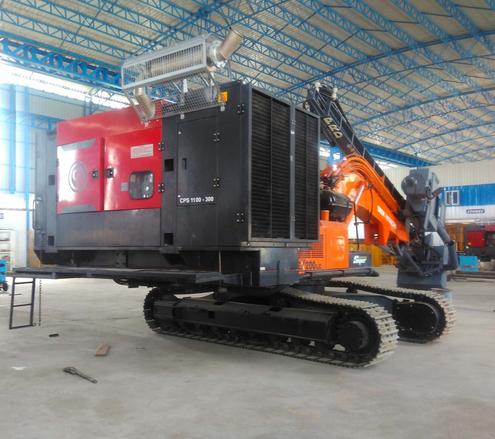 The new machines are industry first conceptualised units in which the compressor is mounted on a crawler excavator, where usually conventional blast hole drills rigs or truck mounted compressor units connected to drills are used. They are mounted on excavators with the counter weight eliminated and the drill mast mounted onto the boom.