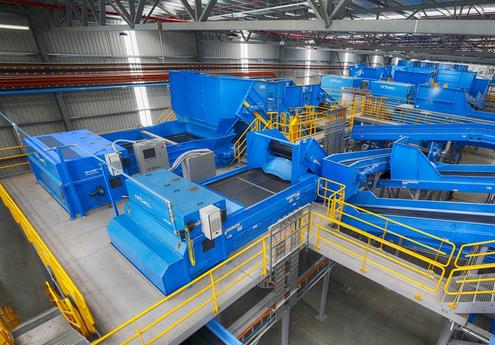 According to Cleanaway, the Perth MRF is the most advanced recycling facility in the Southern Hemisphere. The system applies an abundance of recovery technologies to achieve high rates of throughput while maximizing the recovery and purity of recycled commodities. BHS Tri-Disc™ screens are the core of the sorting process, screening out glass and producing clean paper and container streams. The Debris Roll Screens® are employed early in the process to quickly break and remove the high volumes of glass that are typical in Australia, which is then purified by two Nihot Single Drum Separators. NRT optical sorters are employed in both recovery and quality control applications throughout the plant. Two new ColorPlus™-R optical sorters, able to analyze the color of opaque objects, remove small cardboard from the news stream. To achieve Cleanaway’s extremely high standards of over 97% recovery of plastic containers whilst meeting purity rates in excess of 98.5%, six SpydIR® optical units target fiber and polymers to produce PET, HDPE and mixed plastics.