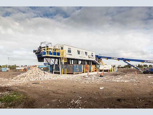 The plant features six pieces of high-powered equipment including an EDGE TRT622 trommel screen, a Slayer XL shredder and 4 bay picking station, which work in harmony to ensure effective processing at each downstream stage. After initial pre-picking to remove visible items such as large slabs of concrete and metal, the material is pushed into the shredder. In addition to standard shredding, the machine features a heavy-duty magnet that removes metals for later recovery. The material then moves through a trommel that separates soils and fines for classification and disposal. The remaining material – anything larger than 20 millimetres – is sent to the picking station via a TS-Series EDGE stacker conveyer system. At the picking station light materials such as plastics and cardboard are separated, with heavier materials including metal, concrete, brick and timbre dropped into under-side bins.