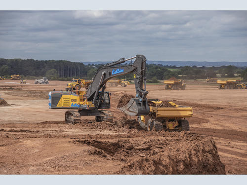 In productivity terms, the introduction of the EC950F, alongside three EC750’s and two EC700’s, at Mercia Park has already enabled the Collins Earthworks team to hit a weekly target of 100,000 cubes of material moved by week two of the project.