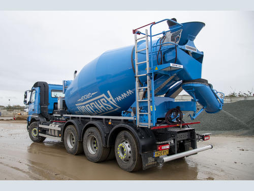 That robustness is due partly to the high-quality lightweight LICRO 500 steel used in the drum’s construction. Optional Litronic-EMC mixer controls were specified for both units and allow demand-based control by the operator of the truck’s engine speed and torque, returning significant fuel savings and reduced wear on the carrier’s drive train. Constant Speed Drive, with its ability to reduce the amount of revolutions the drum requires, also helps extend service life.