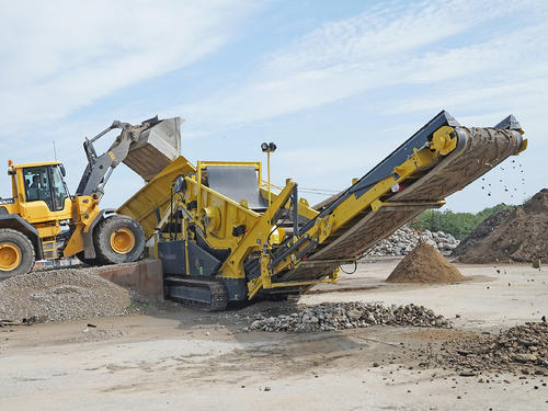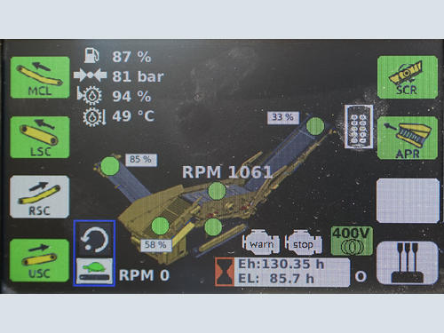 The K5e reaches up to 100 tph in the typical soil processing in Frederikshavn. This value varies depending on the material and in particular on the availability of the 4.5-m³ wheel loader which is also used for truck loading. Even in this case, the plug-in electric operation pays off: no diesel fuel consumption during idling and no maintenance-related operating hours - once the "stand-by" is being set by wheel loader driver Peter Bragaard via the radio remote control, the equipment is back in operation speed in no time.