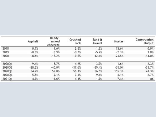 Construction demand for mineral products resilient during the first quarter of 2021 but challenges lie ahead
