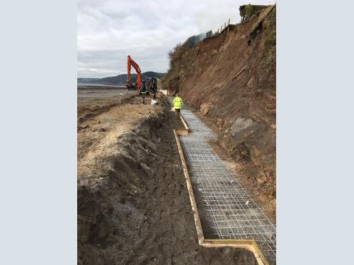 A 45m stretch of the coast line was gradually being eroded by the sea which was in turn threatening to wash away sections of three back gardens above the cliff line.
